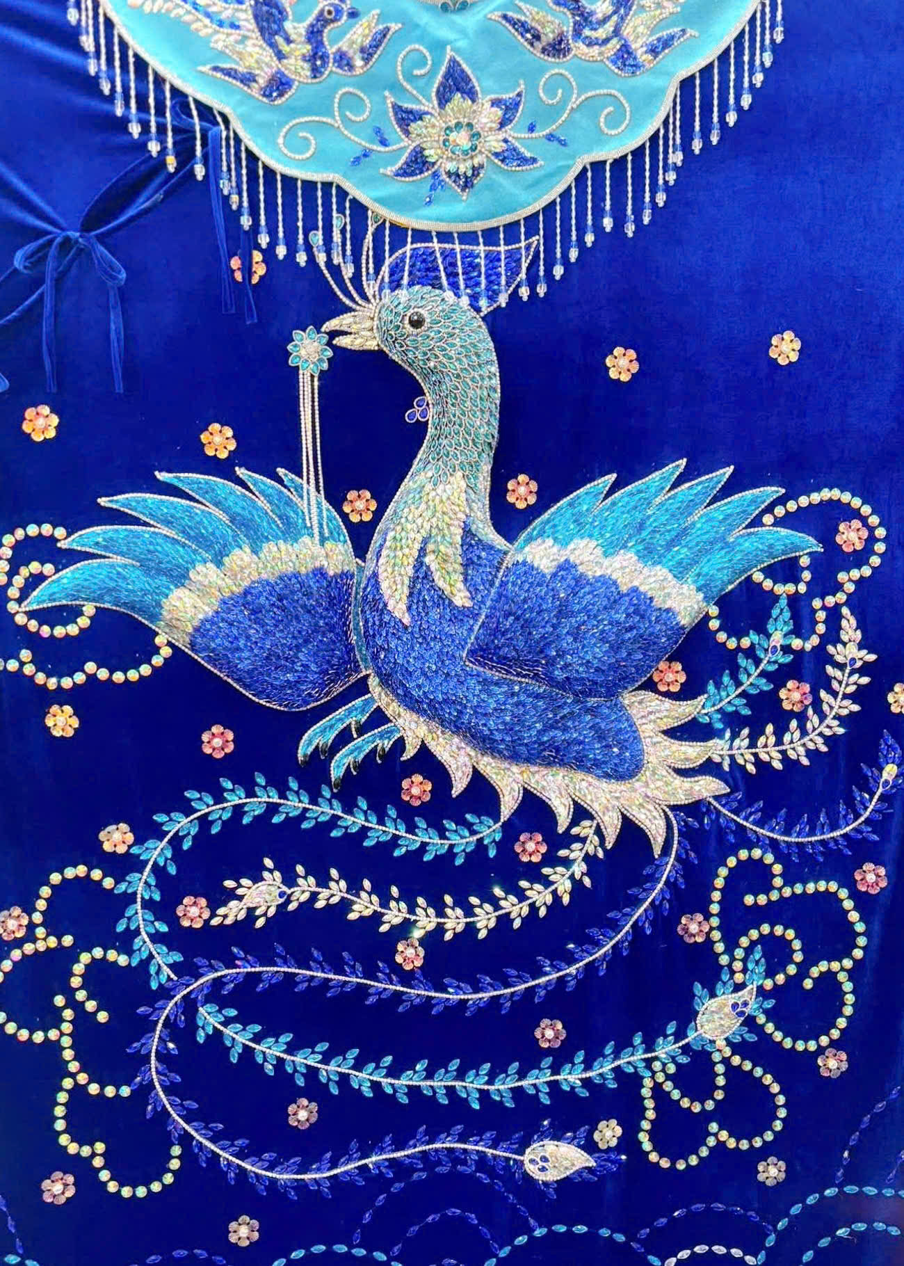Áo Bà phụng lớn đính đá tầm trung xanh dương
