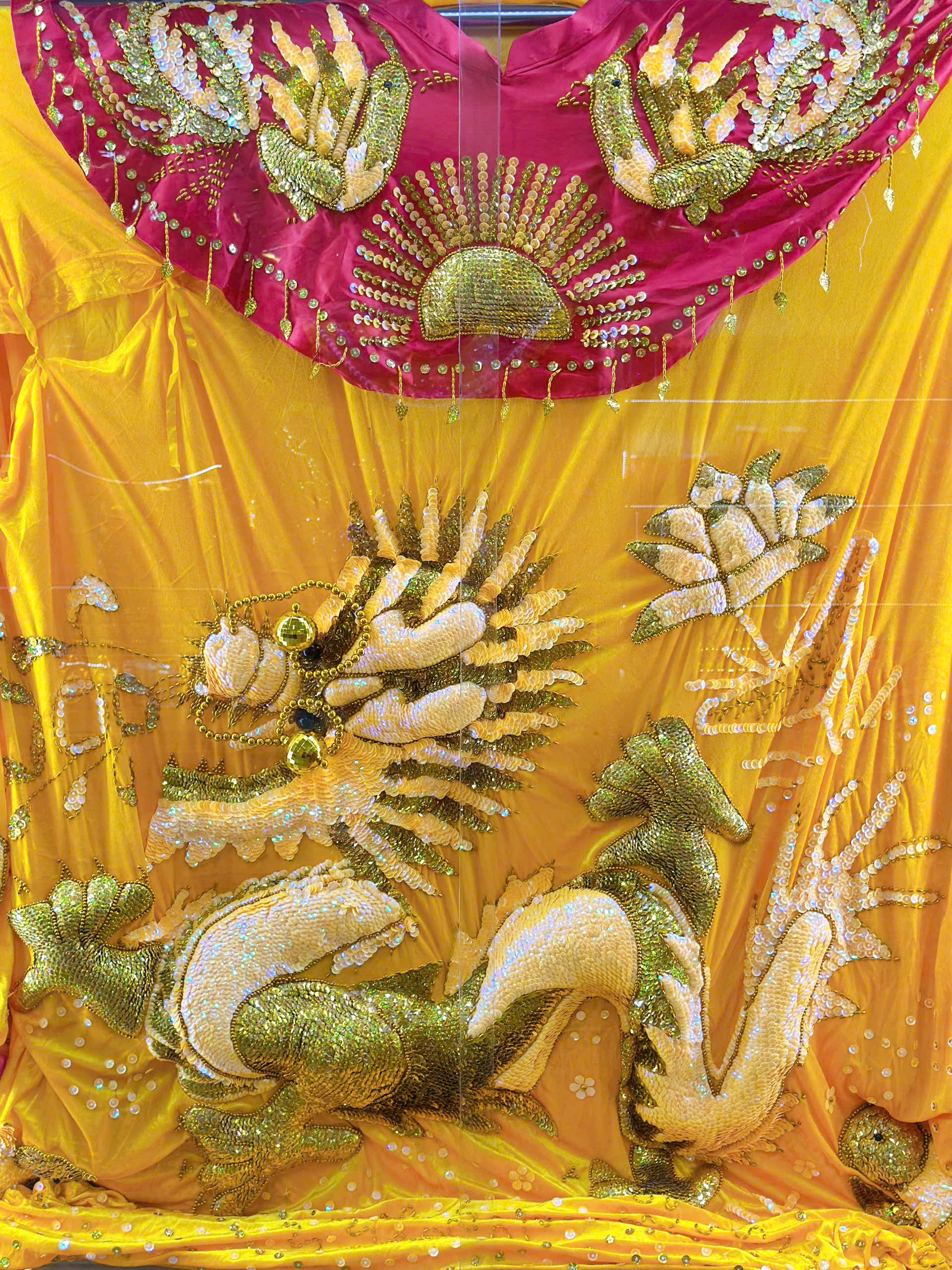 Mô tả: Áo Bà rồng nổi lớn sà cừ đơn sắc vàng