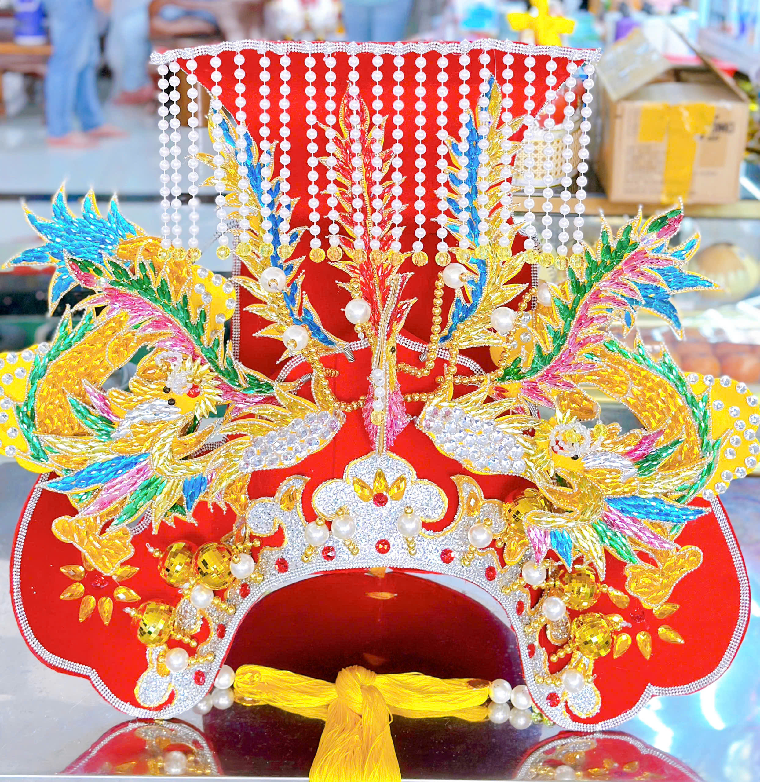 Mão Bà rồng đính đá ngũ sắc đỏ