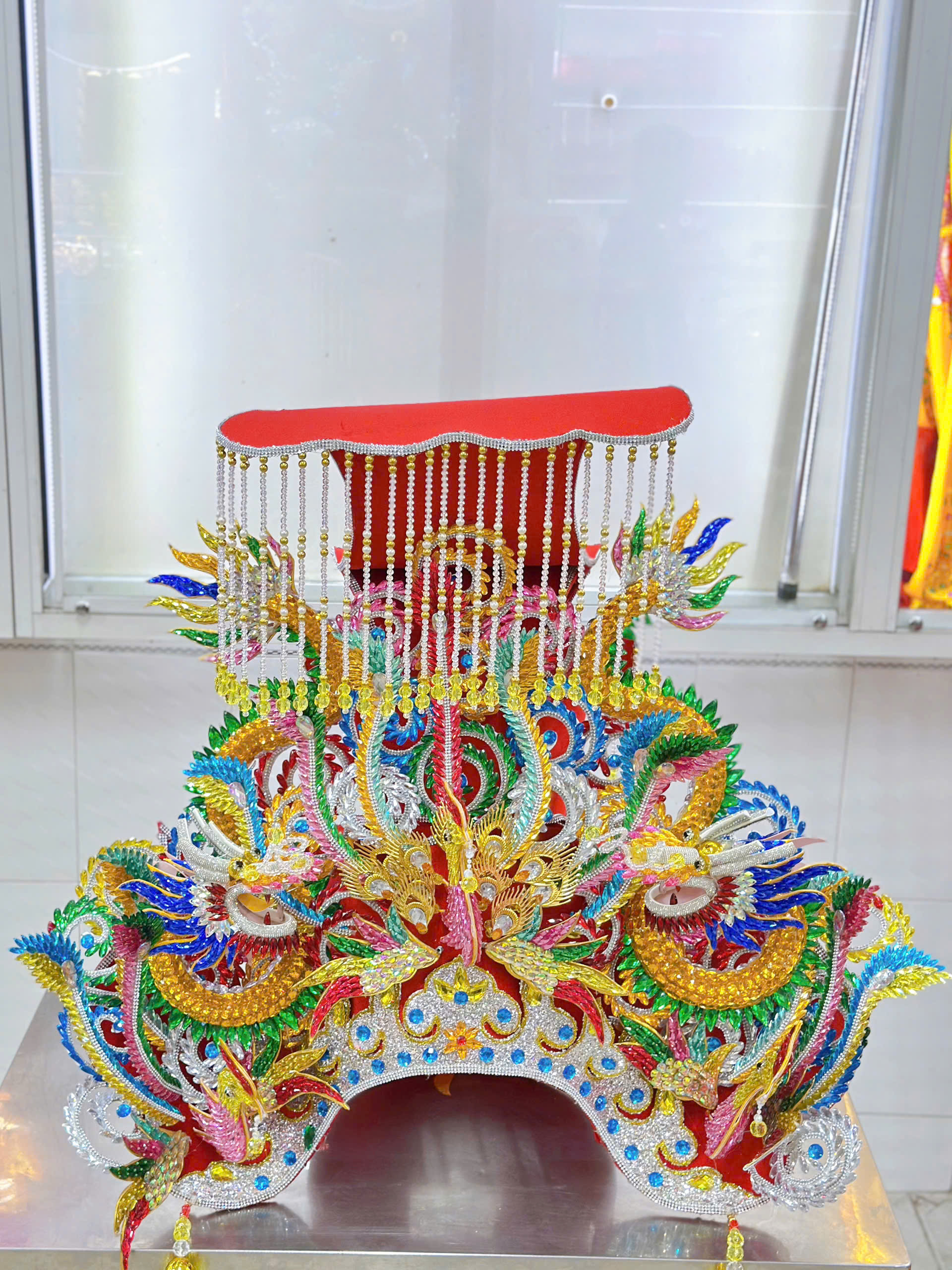 Mão Bà rồng lớn đính đá ngũ sắc đỏ