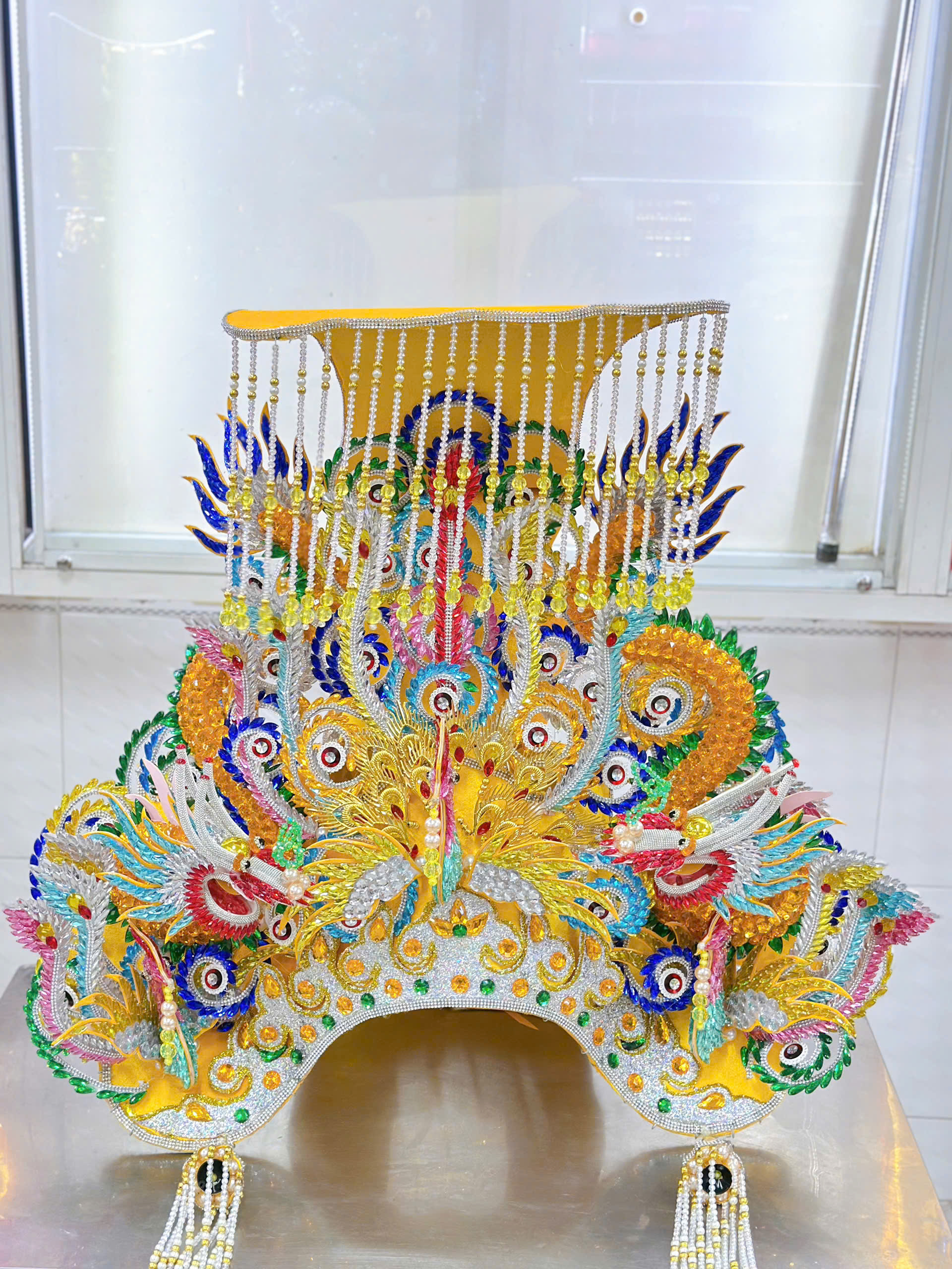 Mô tả: Mão Bà rồng lớn đính đá ngũ sắc vàng